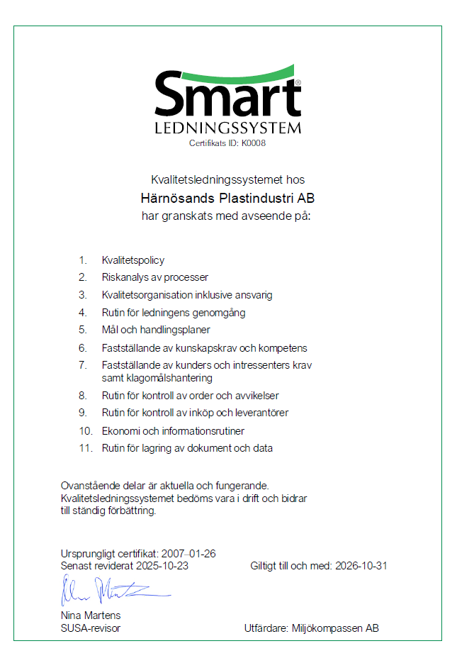Tillsammans med våra kunder arbetar Härnösands Plastindustri AB mot höga miljömål!